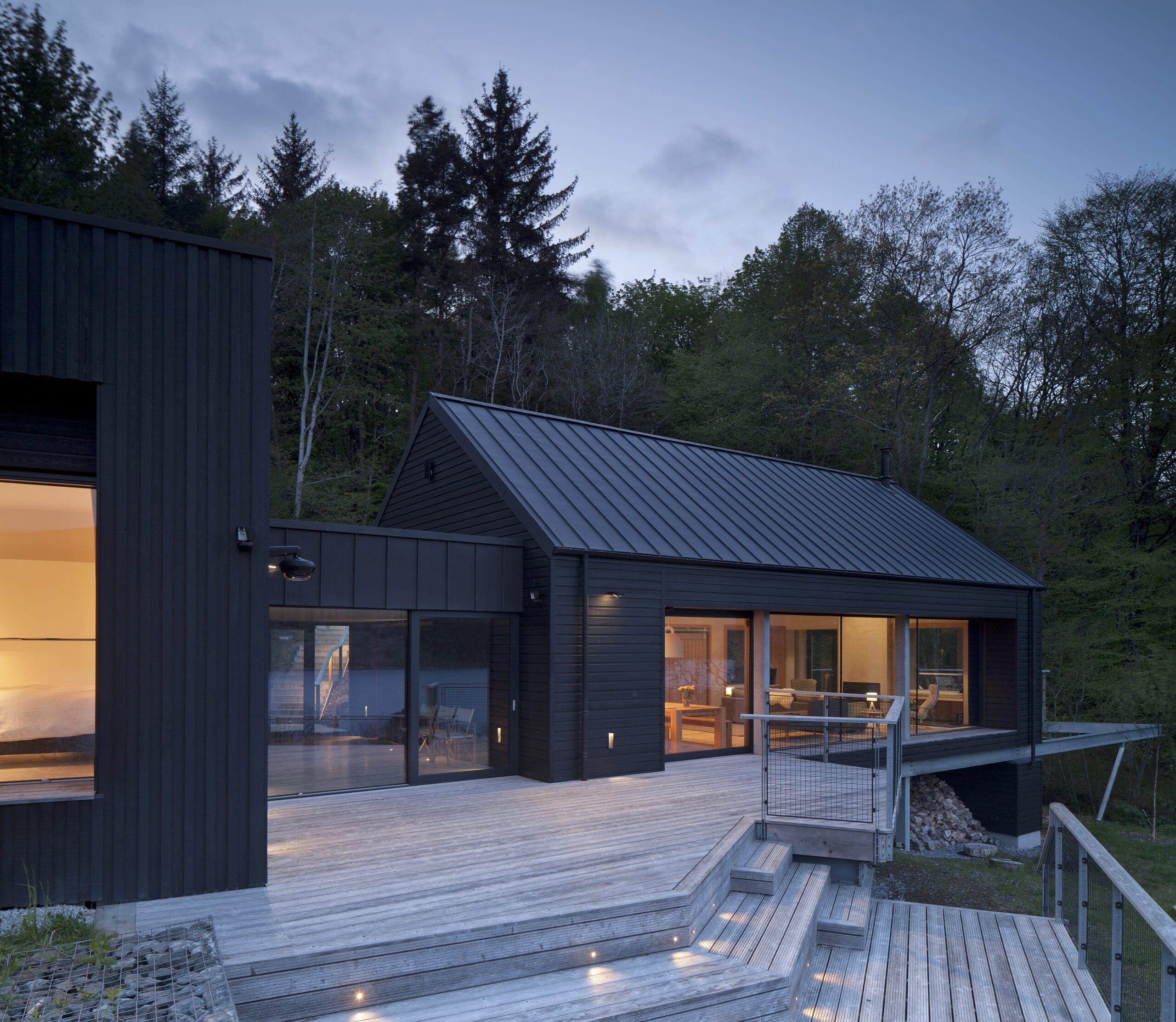 Lochside House is a unique and distinctive cabin style house nestled within the natural contours of the site making the most of its natural surroundings and the outstanding views across the Loch to the mountains beyond.